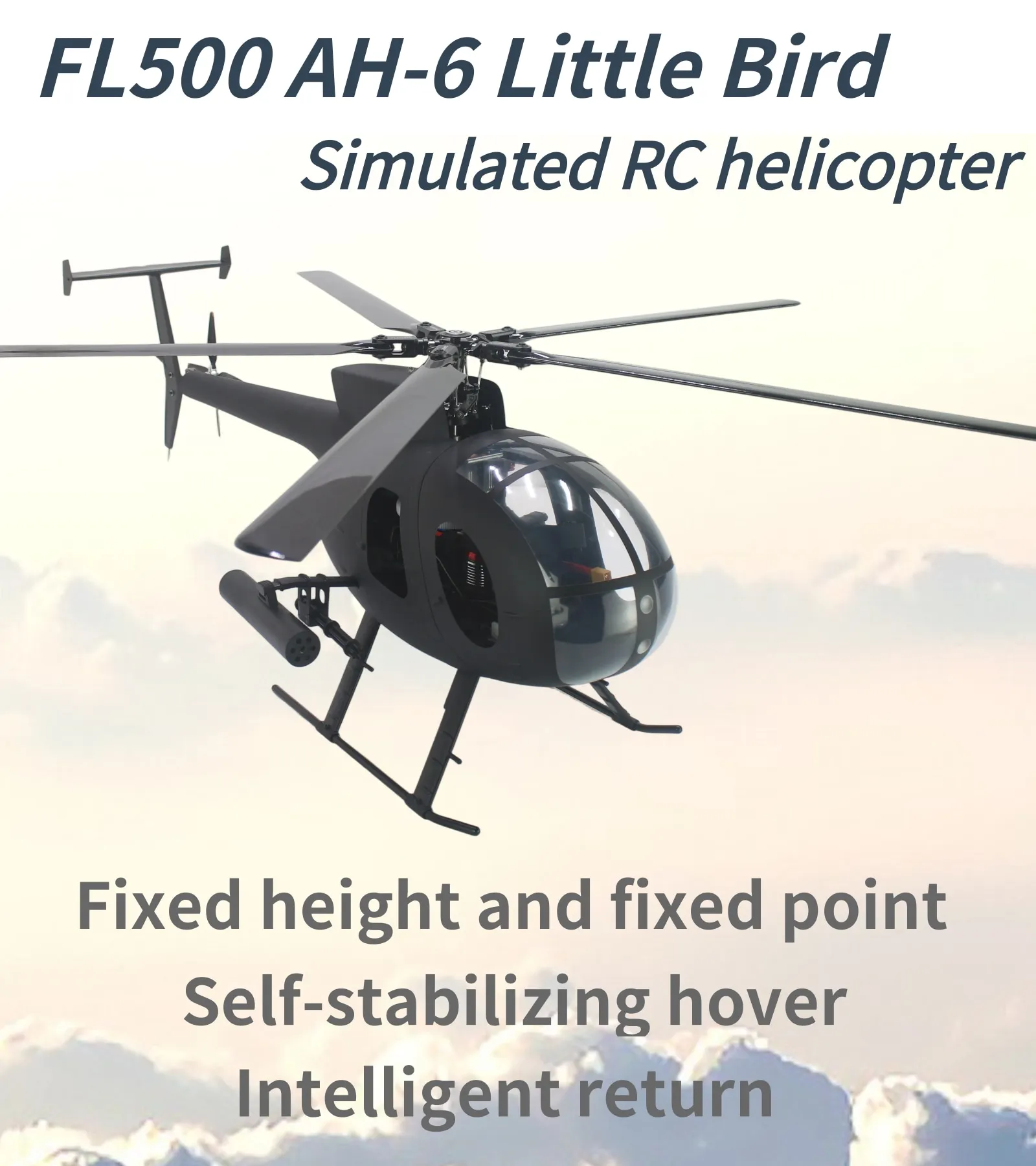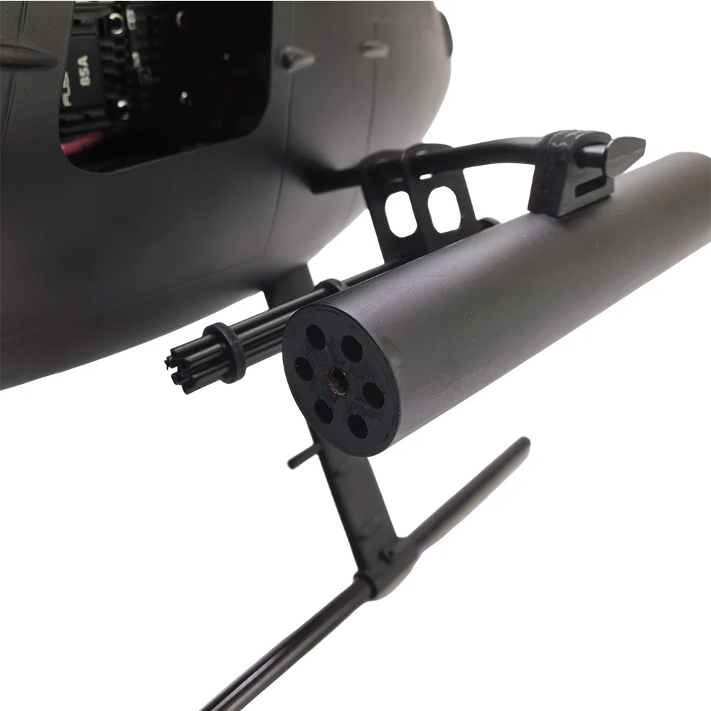 This precision-crafted 500 size scale helicopter is ready for flight. The FLISHR AH-6 Little Bird features five rotor blades powered by a brushless motor for stable and agile flight. Flight control with GPS function provides an easy and smooth flying experience. The MD500D Little Bird helicopter has GPS self stabilization mode,ATT Mode ,6G manual mode,One click return,Low battery return,Out of Control Return,BeiDou, GPS,Galileo and QZSS satellite Quad-mode positioning,system with omnidirectional positionin functions for worry-free flying. With its scale realism and durable construction, this helicopter brings the thrill of aerial maneuvers to your backyard or local park. Beginners and experienced pilots alike will appreciate functionality and realistic flying performance of this scale helicopter.Suitable for 14 years and up.