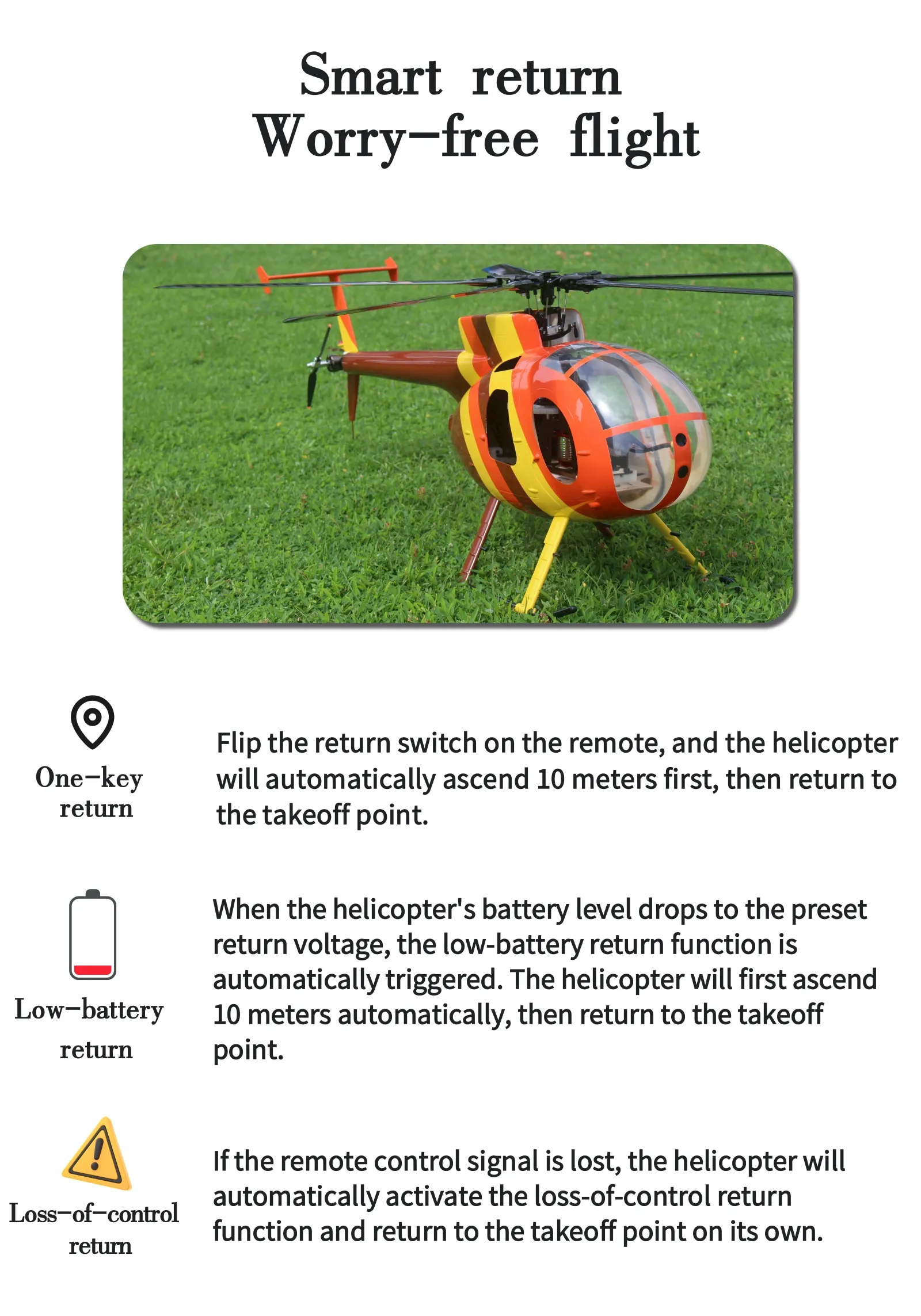 One-Click Return + Low Battery Auto-Return + Out-of-Control Return